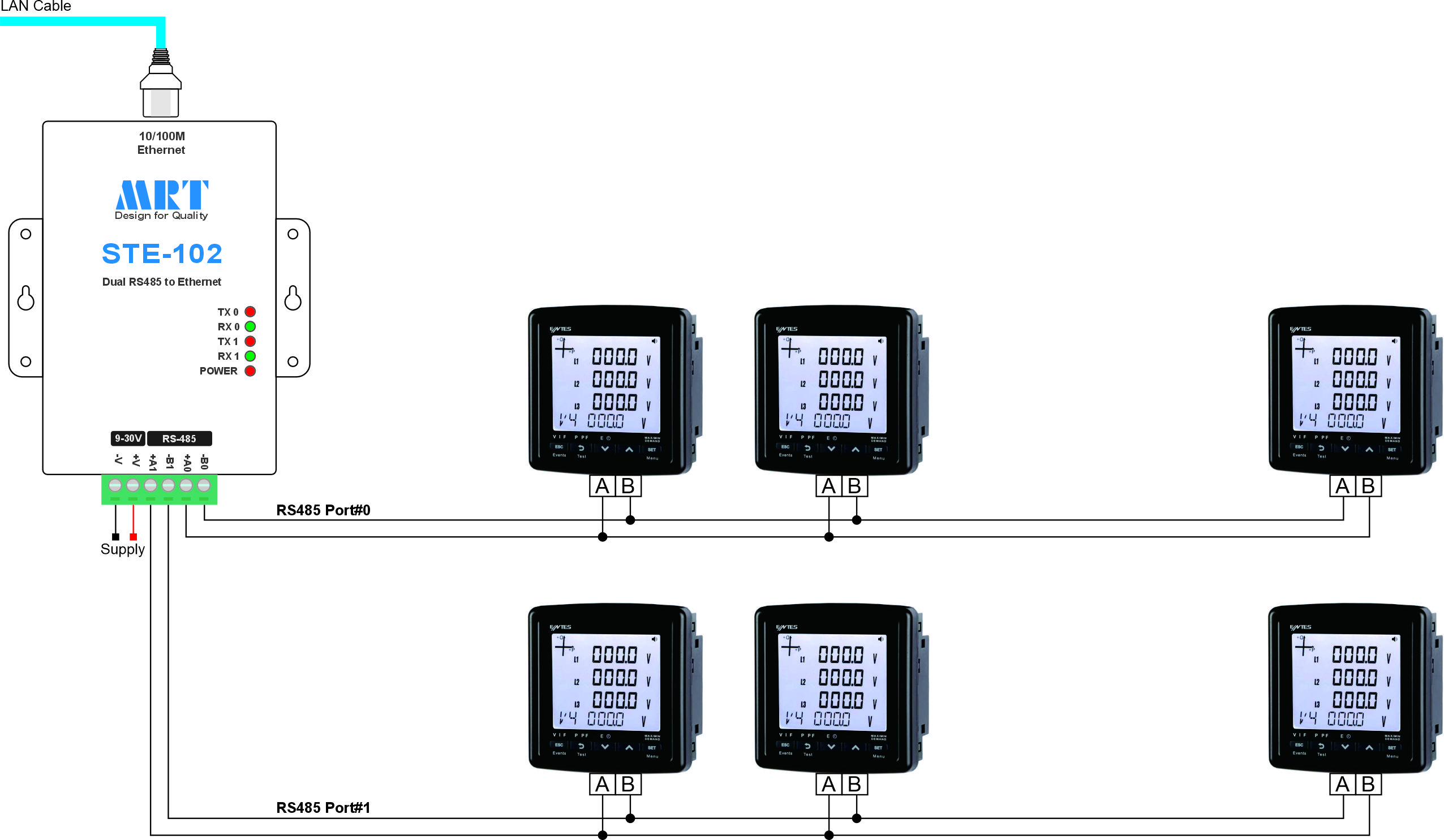 STE-102 : Ethernet to dual port RS485 converter