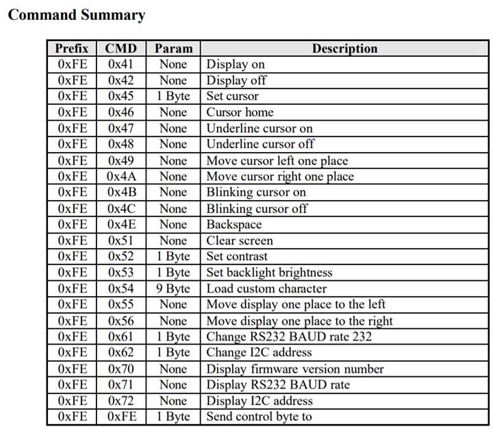 3. คำสั่งในการควบคุมจอแสดงผลนี้มีอยู่ทั้งหมด 23 คำสั่ง ดังนี้