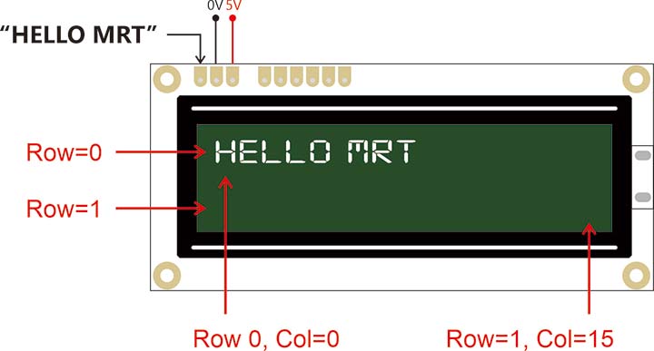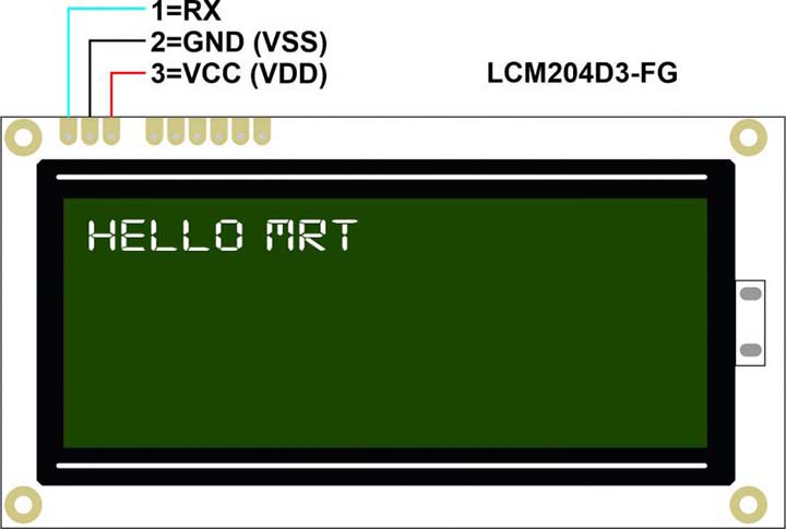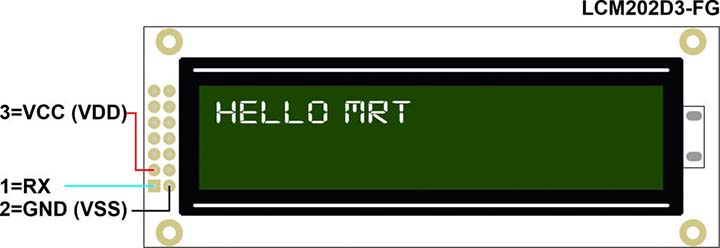 จอแสดงผลรุ่นนี้มีการใช้งานง่าย เมื่อเริ่มจ่ายไฟให้กับจอแสดงผล ก็พร้อมสำหรับการรับข้อมูลผ่านพอร์ตอนุกรม เพื่อแสดงผลได้ทันที ซึ่งจะเริ่มแสดงผลที่บรรทัดแรก ตำแหน่งซ้ายมือสุด