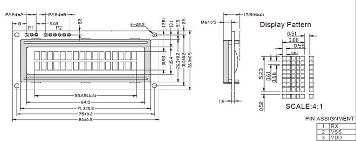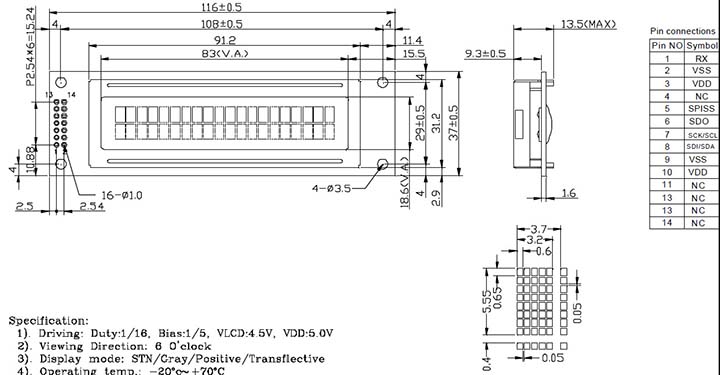 1.1. LCM162K3-FG จอแสดงผลขนาด 16×2 ขนาดตัวอักษร ตัวอักษรสูง 5.23 มม.