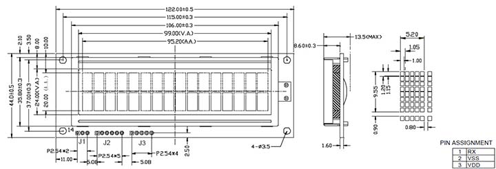 1.3. LCM202D3-FG จอแสดงผลขนาด 20×2 ขนาดตัวอักษร ตัวอักษรสูง 5.55 มม.